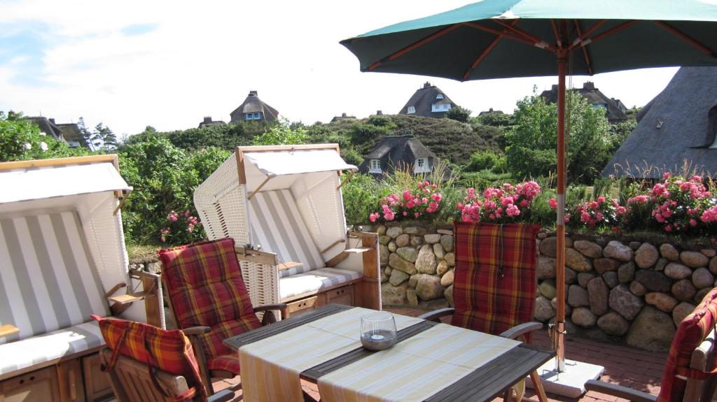 Die Unterkunft Mellhörn begrüßt Sie in List, 16 km vom Sylt Aquarium entfernt und bietet Zugang zu einer Sauna. Die Unterkunft liegt 15 km vom Wasserpark Sylter Welle entfernt und bietet einen Garten und kostenfreie Privatparkplätze. Das Ferienhaus mit Terrasse und Gartenblick verfügt über 3 Schlafzimmer, ein Wohnzimmer, einen Flachbild-Sat-TV, eine ausgestattete Küche und 3 Badezimmer mit Dusche und Badewanne. Handtücher und Bettwäsche erhalten Sie gegen Aufpreis. Der Hafen Hörnum liegt 32 km vom Ferienhaus entfernt und das Erlebniszentrum Naturgewalten Sylt erreichen Sie nach 2,7 km. Der nächstgelegene Flughafen ist der 14 km vom Mellhörn entfernte Flughafen Sylt.