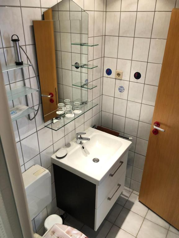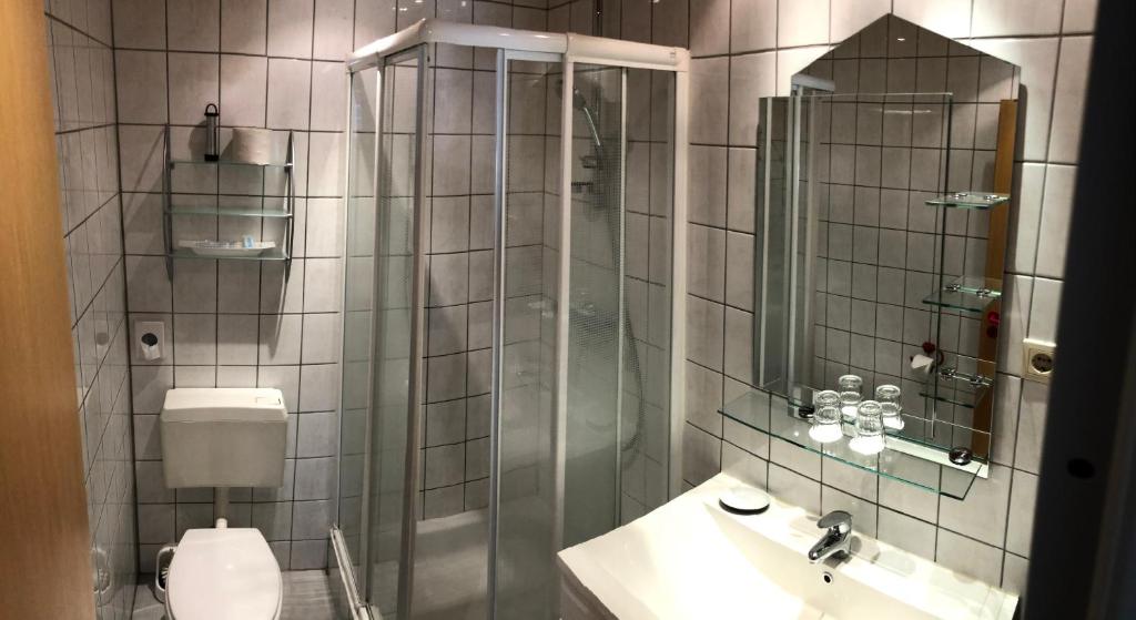 Jedes Zimmer in der Pension verfügt über einen Kleiderschrank, einen Flachbild-TV und ein eigenes Bad.