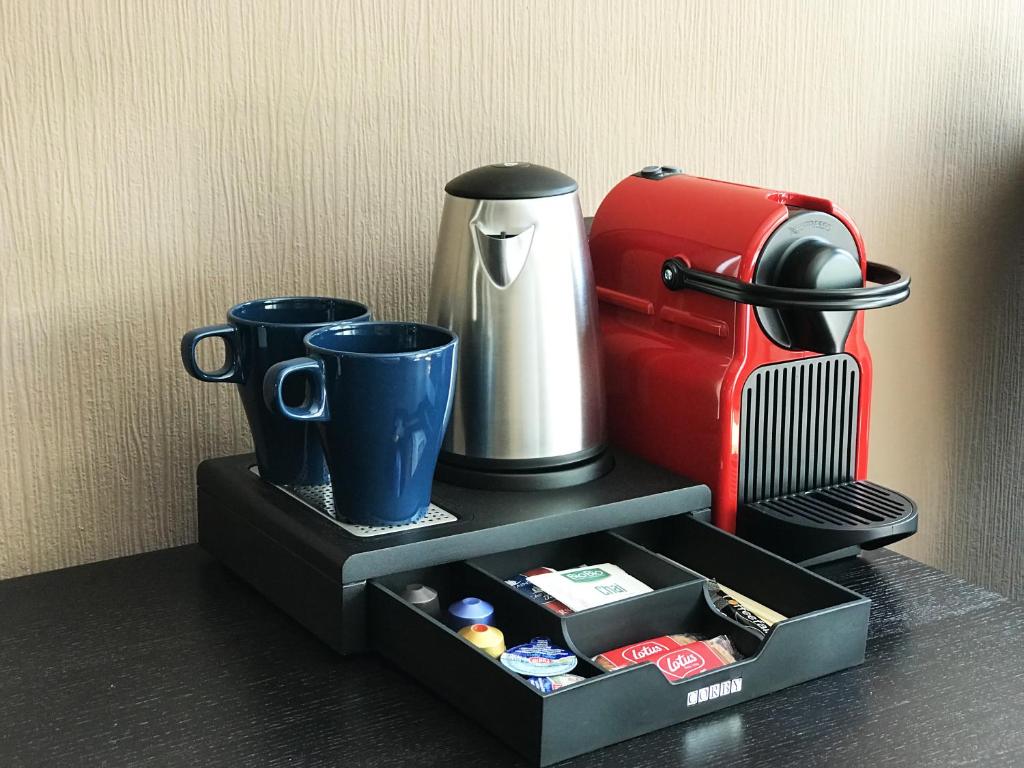Die Privatunterkunft bietet einen Sitzbereich mit einem Flachbild-TV und ein Gemeinschaftsbad mit einem Haartrockner und einer Dusche. Ein Kühlschrank, ein Wasserkocher und eine Kaffeemaschine sind ebenfalls vorhanden.