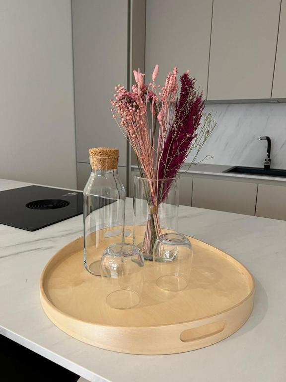 Dieses Apartment verfügt über 1 Schlafzimmer, einen Flachbild-TV und eine Küche.