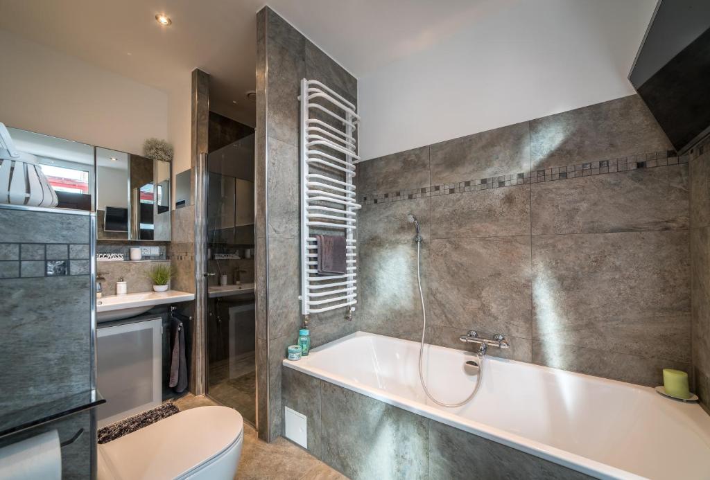Bis zu 5 Erwachsene nutzen das Apartment mit Bergblick auf den Hexentanzplatz in der besten Lage von Thale am Eingang des Bodetals. Es stehen 3 Vollbäder (2x Duschen mit WC, 1x Wanne mit Dusche und WC) zur Verfügung. Geschlafen wird in 2 Schlafräumen. Im Nebenraum steht noch eine Schlafcouch für eine weitere Person zur Verfügung.