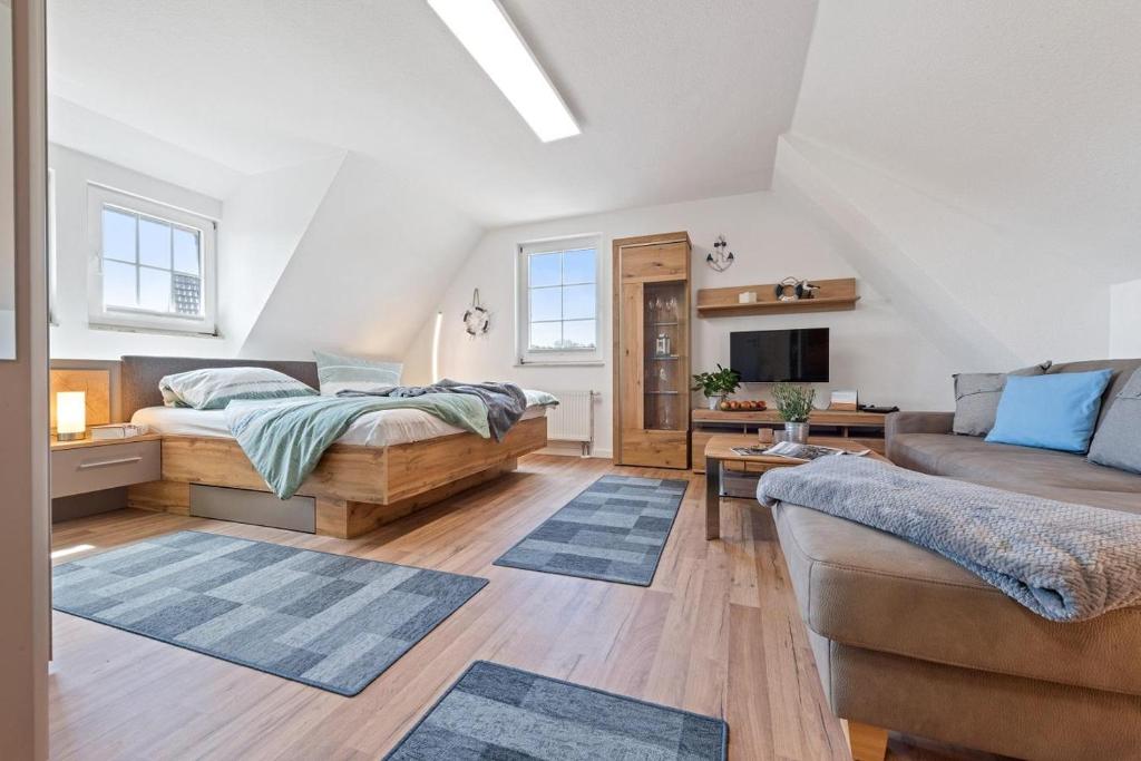 Die moderne Dachgeschosswohnung (40 m²) für 2 Personen ist ruhig gelegen und befindet sich nur ca. 150 m vom Strand und ca. 500 m vom Bodden entfernt.