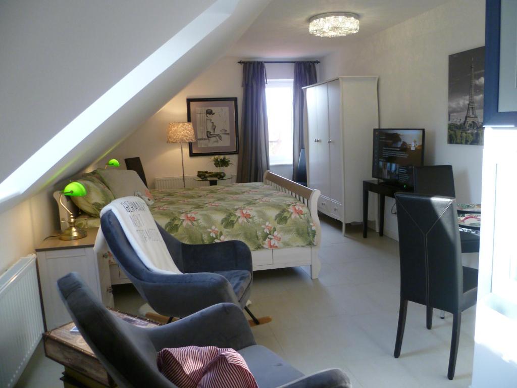 Das NEUE Studio SAVOIR & VIVRE erwartet Sie in einer ruhigen Sackgassenlage ( Neubau 2021 ) in Garding, vor den Toren Sankt Peter Ording. Kostenloser W-Lan verfügbar (Hotelstandart). Das Studio mit eingebauter Küchenzeile, befindet sich im 1.OG eines sehr gepflegtem, neuem Einfamilienhauses. Eine Klönschnackbank / Sitzgelegenheit siehe Foto vor dem Haus, lädt zum verweilen ein. Das Studio ist mit einem großen Doppelbett 180 x 200, einer begehbaren großer ebenerdigen Dusche, einem großen TV, sowie Küchenzeile ausgestattet. Ebenso Bettwäsche, Bad Handtücher, Bademantel und Fön gehören zur Ausstattung, sowie eine Wärmflasche und Näh Kid. Den Gästen steht in einem separatem Raum eine Waschmaschine, Bügeleisen, Bügelbrett zur Verfügung. Sonnenschutz, Verdunklungsrollos und Fliegengitter, gehören zur Ausstattung. Die gesamte Unterkunft ist mit hochwertigen Boden Fliesen ausgestattet. Herzliche Willkommen! Welcome!