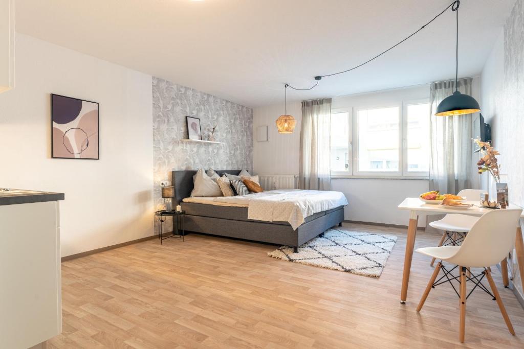 Fühle Dich wie zu Hause und genieße Deinen Aufenthalt in unserem nagelneuen, vollausgestatteten Apartment, zentral und doch sehr ruhig gelegen, nur 100 Meter von der S-Bahnstation in Echterdingen. Fahrzeit zur Messe/Flughafen Stuttgart in unter 5 Minuten! Neben frischen Handtüchern & Bettwäsche, Minibar, WLAN, Smart TV inkl. NETFLIX, Esstisch, Küche, Bad, Kaffemaschine & Kaffee, Toaster & Bügeleisen, kannst Du es Dir vorallem auf Deinem Doppel-Quensize Bett gemütlich machen.
