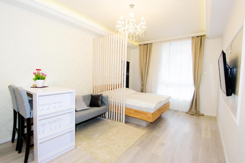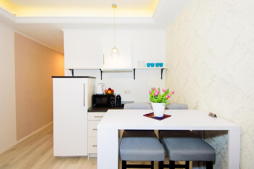 Das Apartment verfügt über 1 Schlafzimmer, einen Flachbild-Sat-TV, eine ausgestattete Küche mit einer Mikrowelle und einem Kühlschrank, eine Waschmaschine und 1 Bad mit einer Dusche. Handtücher und Bettwäsche werden im Apartment gestellt.