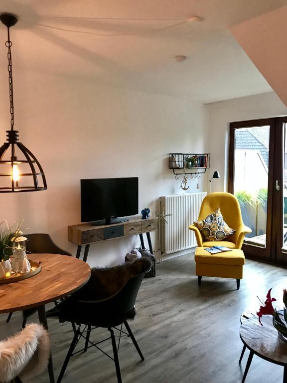 Das Apartment bietet eine Sonnenterrasse. Wenn Sie die Umgebung erkunden möchten, können Sie in der Umgebung Rad fahren. Das Nordbrise arrangiert gerne einen Fahrradverleih für Sie.