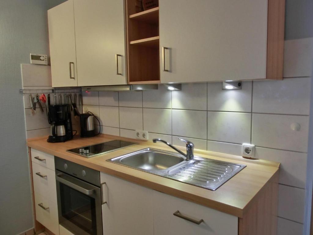 Die Null Ferienwohnung ZU1 "Möwennest" in Graal-Müritz bietet eine Terrasse. In diesem Apartment haben Sie Zugang zu einer voll ausgestatteten Küche.