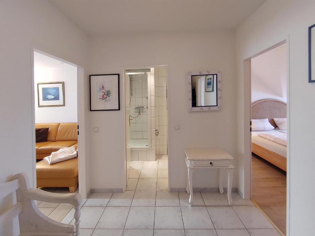 Die Obere Wandelbahn 15 Ferienwohnung *Obere Wandelbahn 15/19 - Achterdeck* mit Meerblick bietet Unterkünfte mit einer Terrasse und einem Balkon, etwa 200 m vom Strand Kniepsand entfernt.
