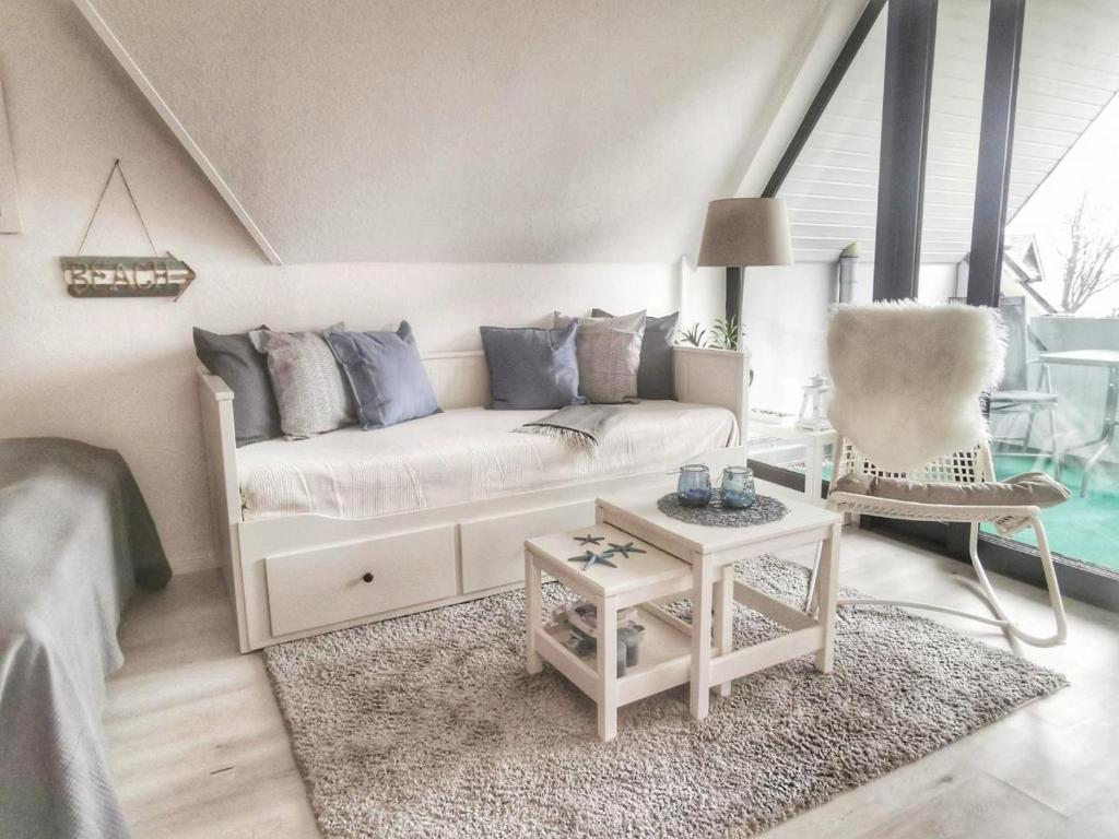 Die Unterkunft Obj 84 Meerblick Fewo für 2 bis 3 Personen strandnah, WLAN ist 1,2 km vom Zentrum von Travemünde entfernt.
