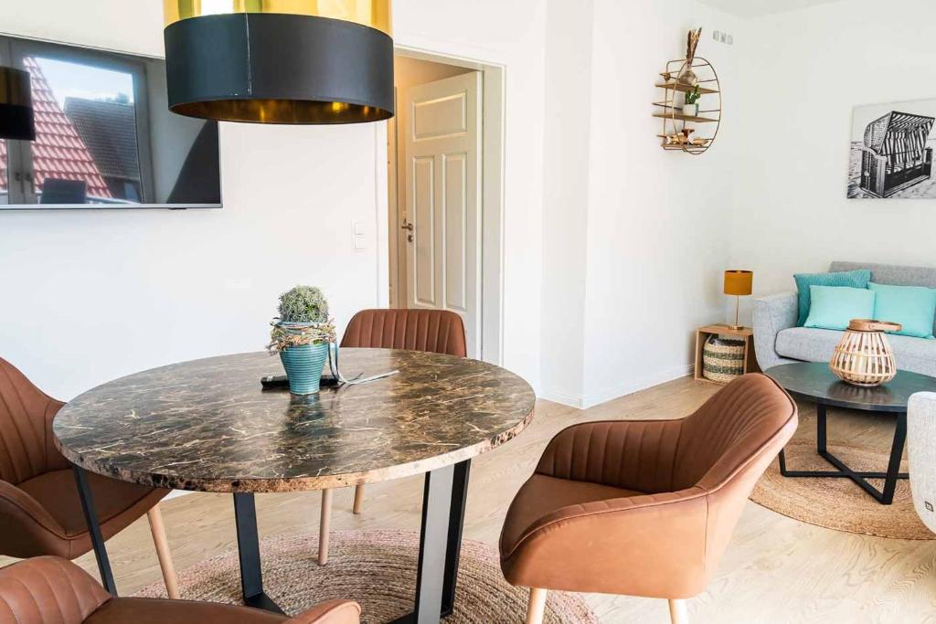 Die Unterkunft Wohnen am Südstrand - Ferienwohnung 1 8 begrüßt Sie in Wyk auf Föhr, 1,7 km vom Strand Nieblum, 1,4 km vom Friesenmuseum Wyk und 1,7 km