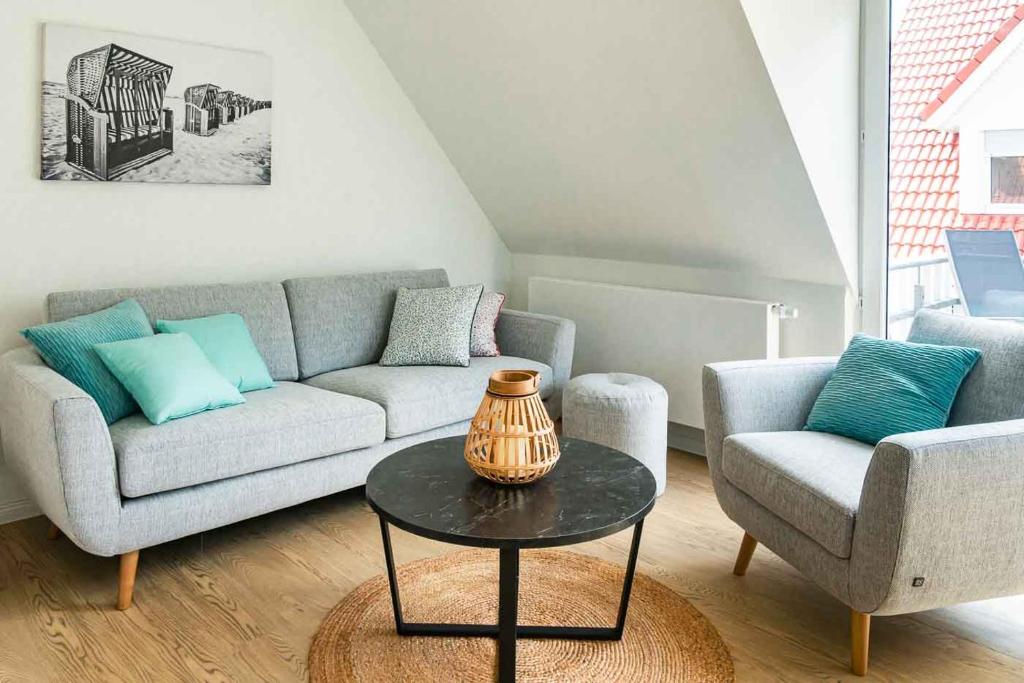 Die Wohnen am Südstrand - Ferienwohnung 2 4 mit Meerblick bietet Unterkünfte mit einem Balkon und einem Wasserkocher, etwa 1,7 km vom Strand Nieblum e