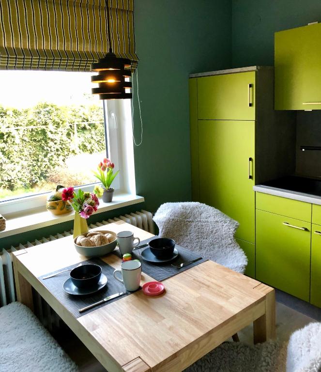Das Apartment verfügt über 2 Schlafzimmer, 1 Bad, Bettwäsche, Handtücher, einen Flachbild-Kabel-TV, eine voll ausgestattete Küche und eine Terrasse mit Gartenblick.