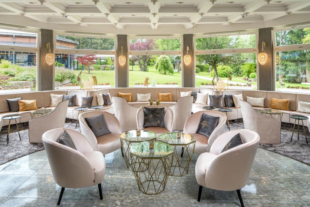 Das Parkhotel Adler befindet sich neben der berühmten Barockkirche in Hinterzarten, 5 km vom Titisee entfernt. Freuen Sie sich auf die kostenfreie Nutzung des 1.800 m² großen Wellnessbereichs mit einem Pool, einem Fitnessraum, einer Sauna und einem Außenpool. Im Parkhotel Adler wohnen Sie in elegant eingerichteten Zimmern mit kostenfreiem WLAN, einem Flachbild-TV und einem modernen Bad. Alle Mahlzeiten sind im Parkhotel Adler inbegriffen und können im Adler Stuben Schwarzwaldhaus genossen werden. Entspannung verspricht ein großzügiger Wellnessbereich mit einem beheizten Innen- und Außenpool, einem Whirlpool, Saunen, einem Dampfbad, einem Solarium, einem Fitnessraum sowie einem Wellness- & Beautycenter. Das Parkhotel Adler erwartet Sie am Fuß der Adlerschanze, einer weltberühmten Skisprungschanze. Im umliegenden Naturpark Südschwarzwald bieten sich Freizeitaktivitäten wie Wandern, Mountainbiken und Skilanglauf an. Auf dem nahe gelegenen 18-Loch-Golfplatz Hochschwarzwald ist die Greenfee täglich inbegriffen. Das Parkhotel verfügt zudem über eine 4 Hektar große Parklandschaft. Hier können Sie Volleyball, Boule, Badminton und Krocket spielen oder die romantischen, von Bäumen gesäumten Wege erkunden.