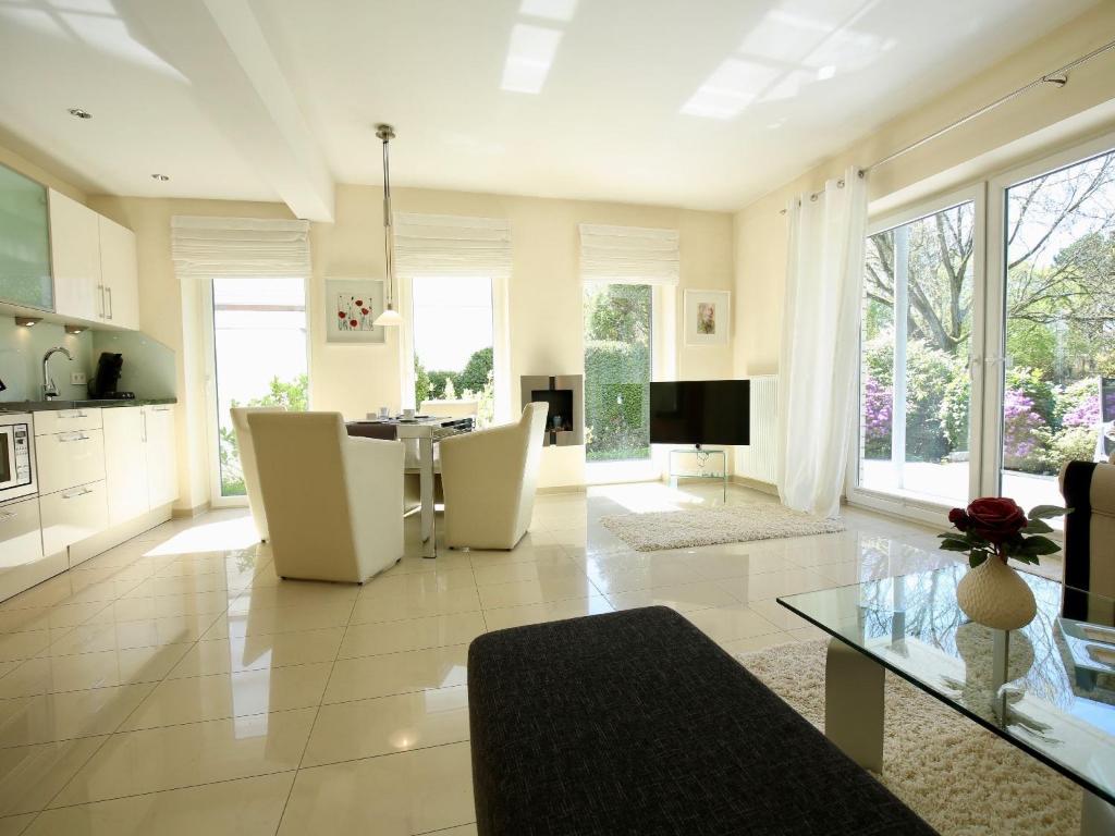 Die "Parkoase" hält was der Name verspricht. Sie liegt an einem idyllischen Park im Zentrum von Wangerooge. Die Lage ist einmalig ruhig und dennoch sehr zentral. Nach einem aufregenden Tag am Strand lässt es sich herrlich auf der windstillen und sonnigen Terrasse entspannen. Mit Blick auf die gepflegte Anlage des Parks genießen Sie hier eine Oase der Ruhe. Der Ortskern mit guten Einkaufsmöglichkeiten und einer abwechslungsreichen Gastronomie sowie der Hauptstrand und die Promenade sind in wenigen Gehminuten erreicht. Diese luxuriöse Wohnung mit einem separaten Schlafzimmer verfügt über eine gehobene Ausstattung. Mit 62 m² Wohnfläche bietet sie den idealen Rahmen für einen erholsamen Urlaub für 2 Personen. Auf Wunsch steht ein Kinderreisebett zur Verfügung.