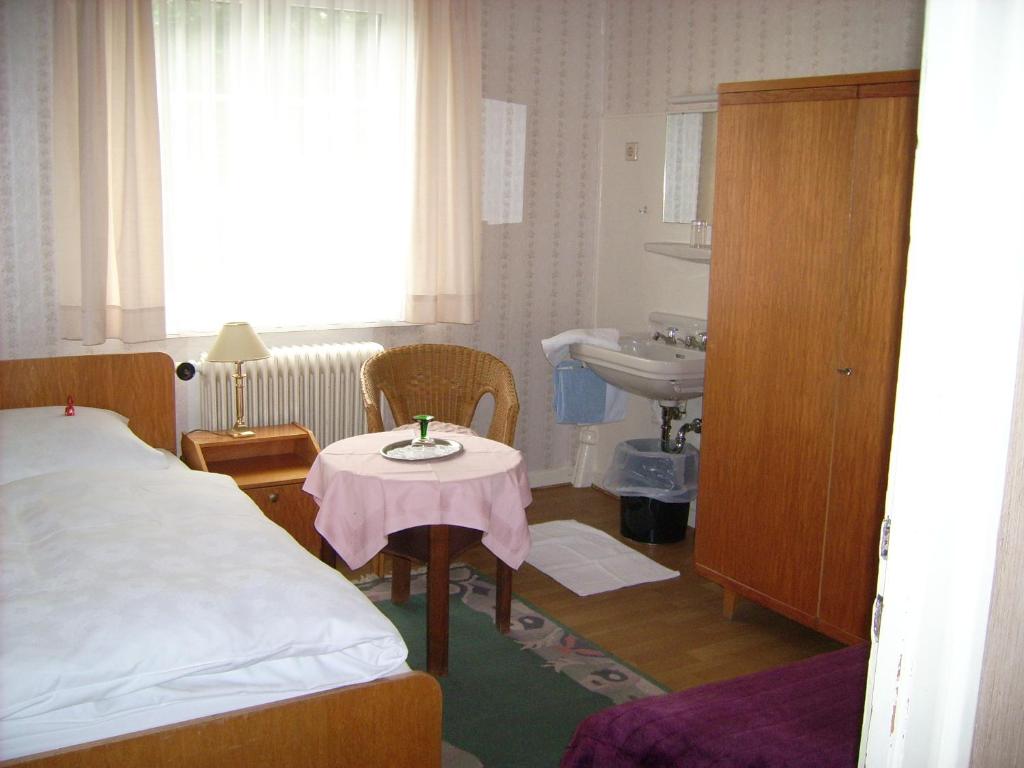 Die hellen Zimmer in der Pension Haus Weller sind mit Holzmöbeln eingerichtet. Jedes Zimmer verfügt über einen Sitzbereich und bietet Aussicht auf den Garten.