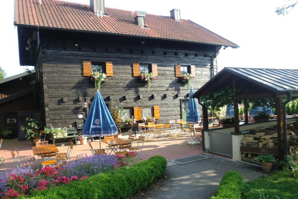 Genießen Sie die traditionelle bayerische Küche in den wärmeren Monaten auf der Terrasse. Die Pension verfügt auch über einen Biergarten und serviert hausgemachte Kuchen.