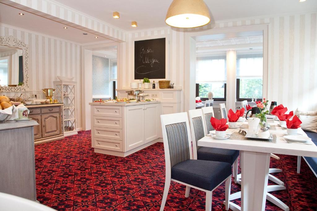 Morgens stärken Sie sich an einem reichhaltigen Frühstücksbuffet. In den Sommermonaten können Sie auf der hübschen Terrasse speisen.