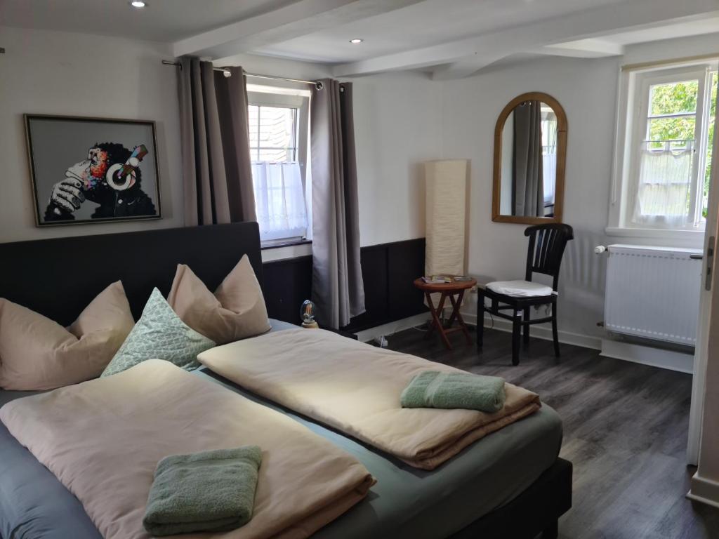 Liebe Gäste, Frei nach dem Motto: " Alt bewährt in neuem Glanz" kehren Sie nun in das in 03.2019 frisch renovierte Fachwerkhaus direkt am Kirchplatz Remblinghausen ein. Mit viel Liebe wurde dem 301 Jahre alten Schätzchen wieder Leben eingehaucht und wir freuen uns nun Sie, als unseren Gast, begrüßen zu dürfen. Fachwerktypisch sind die Deckenhöhen in der obersten Etage, somit nur das Apartement "Balduine" mit 3 Einzelbetten und 1 Doppelbett betreffend, alterstypisch interessant. Hier kann man sich in ein Leben vor 301 Jahren hinein versetzen. "Franziska" hingegen, kommt mit erhobenem Hauptes daher. Hier gibt es wiederum eine ungewöhnlich hohe Decke! So hat jedes Apartement seinen ureigenen Charme! Wir freuen usn auf Sie!