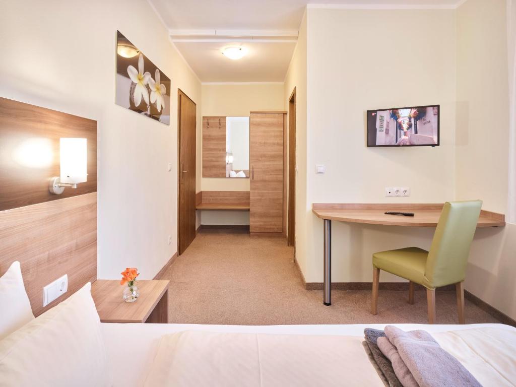 Jedes Zimmer im Hotel verfügt über einen Schreibtisch. Ein Kleiderschrank ist ebenfalls vorhanden.