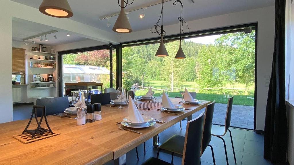 Mit einem Garten, einem eigenen Strandbereich und Grillmöglichkeiten bietet die Unterkunft Pure Nature Munich - Alps Übernachtungsmöglichkeiten in Fischbachau mit kostenlosem WLAN und Flussblick. Dieses Ferienhaus besticht durch kostenlose Privatparkplätze und befindet sich in einer Gegend mit Möglichkeiten zum Wandern, Skifahren und Aktivitäten wie Fahrradfahren. Dieses Ferienhaus mit einer Terrasse und Bergblick hat 5 Schlafzimmer, ein Wohnzimmer, einen Flachbild-TV, eine gut ausgestattete Küche mit einem Kühlschrank und einem Geschirrspüler sowie 3 Badezimmer mit einer Badewanne. In diesem Ferienhaus werden Handtücher und Bettwäsche angeboten. Der nächstgelegene Flughafen ist der Flughafen München, 90 km von der Unterkunft Pure Nature Munich - Alps entfernt.