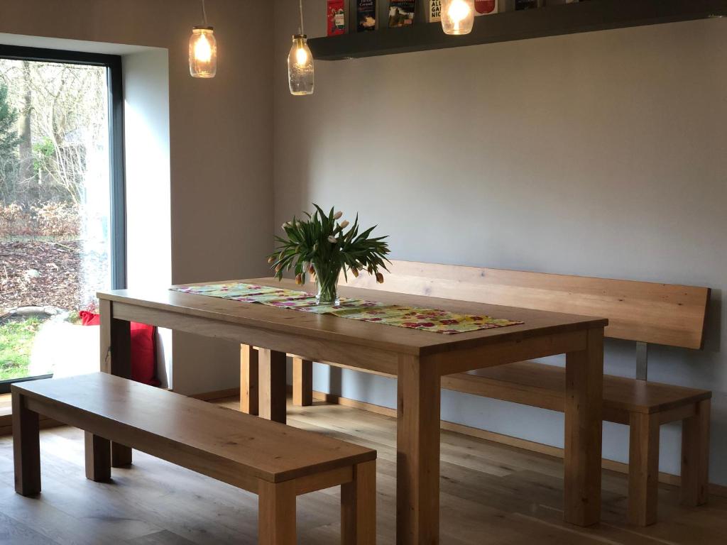 Das Ferienhaus verfügt über 2 Schlafzimmer, 1 Bad, Bettwäsche, Handtücher, einen Flachbild-Sat-TV, einen Essbereich, eine voll ausgestattete Küche und eine Terrasse mit Gartenblick.