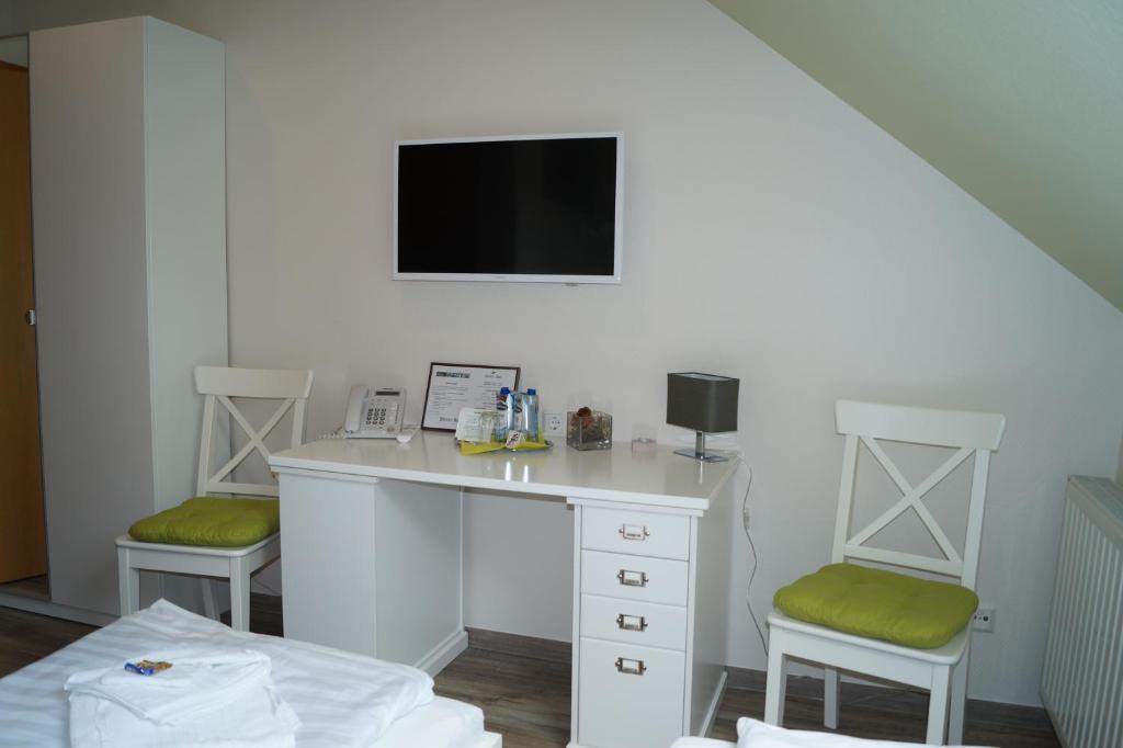 Die Nichtraucherzimmer im Pfälzer Hof Wernigerode / Harz sind hell eingerichtet und verfügen über einen Flachbild-TV, ein Telefon, eine Auswahl an Kissen und ein Badezimmer mit Haartrockner.