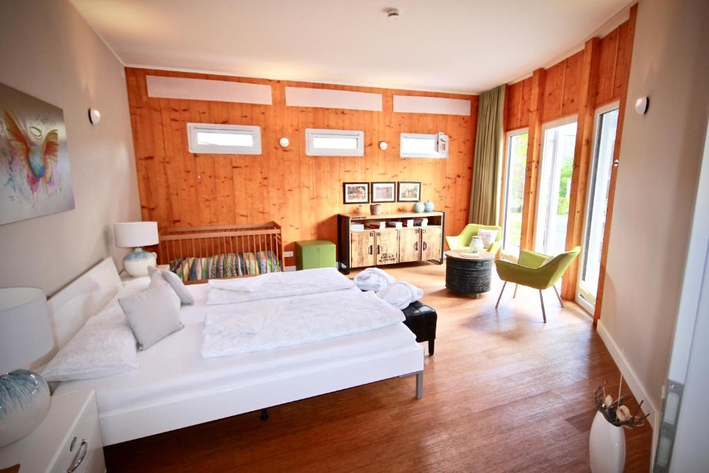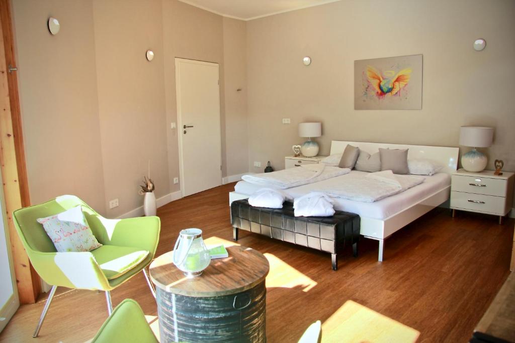Unsere Gartenvilla bietet viel Platz und Ruhe zum Wohlfühlen. Komplett und hochwertig ausgestattetes, ebenerdiges Haus aus reinen Naturmaterialien sorgen für einen natürlichen Luxus. Sie werden nichts vermissen und dürfen schon beim Kofferpacken abschalten! Lassen Sie sich verwöhnen, animieren und motivieren. Genießen Sie auch die umfassenden Wellness-Angebote vor Ort in unserer BodyBalanceLounge (Bitte Behandlungen im Voraus anfragen). Eine kleine Waschküche mit Waschmaschine und Trockner für Ihren Wäschebedarf, den Sie auch gerne selbst versorgen dürfen (gegen Gebühr). Die Gartenvilla beinhaltet eine eigene hochwertige Sauna-Sanarium Kombination für 4 Personen. 2000m2 Garten mit vielen gemütlichen Nischen, Terrassen, altem Baumbestand und Spielplatz freuen sich auf unsere kleinen und großen Gäste. Unser Pool steht ab 2021 nicht mehr zur Verfügung!, Sie finden jedoch in unmittelbarer Nähe unser städtisches Thermalbad mit mehreren Schwimmbecken im Innen- und Außenbereich. Ein zusätzliches, sehr empfehlenswertes Freibad mit Kinderbereichen und Rutschen finden Sie im Nachbarort Kröv.