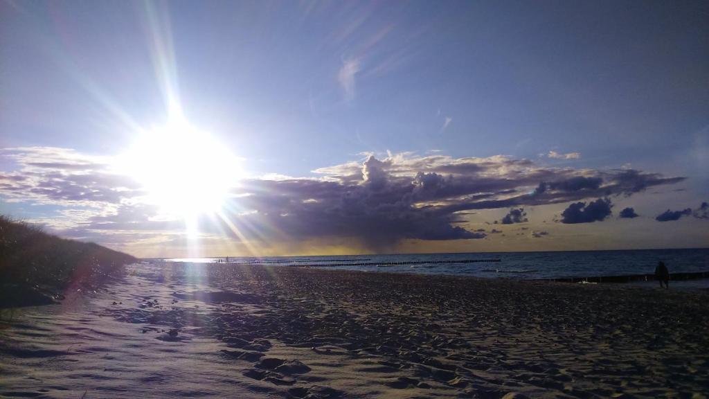 Ferienhaus in ruhiger Ortslage im Ostseeheilbad Zingst nahe der Ostsee. Das Ferienhaus im Reihenhausstil bietet mit 3 Zimmern/Räumen auf ca. 70 qm Platz für bis zu 4 Personen. Das Ferienhaus ist ausgestattet mit z.B. einer kompletten Küche, großzügigem Wohn- und Essbereich mit Parkett, mit einer Sauna für 2 Personen im OG, W-Lan, SAT-TV, DU/WC und Gäste-WC, Waschmaschine, großer Terrasse u.v.m. Ein PKW-Stellplatz und ein kleines Gerätehaus sowie eine große Spiel- und Liegewiese direkt am Ferienhaus runden das Angebot ab. Bäcker und Fahrradvermietung finden Sie in ca. 500m Entfernung vom Ferienhaus. Einen Supermarkt und eine Tankstelle etwa 1.000 m entfernt vom Ferienquartier. Von Mai bis Oktober wird auf dem Museumshof in Zingst jeden Donnerstag ein Bio- und Frischemarkt ausgerichtet. Das Ortszentrum (Fußgängerzone mit zahlreichen Gastronomien und Geschäften) erreichen Sie nach ca. 800 Metern, die Seebrück von Zingst und den Ostseestrand nach etwa 1.200 Metern. Der kleine, am Bodden gelegene Hafen von Zingst ist etwa 1.000 Meter entfernt vom Ferienhaus.