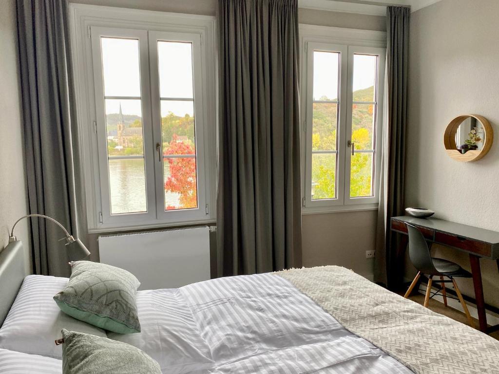 Moderne und hochwertige Ferienwohnungen zentral und direkt am Rhein in Boppard! Die RHEIN-SUITES BOPPARD empfängt ab Januar 2022 nach intensiver Sanierung und Modernisierung in drei neu konzipierten Ferienwohnungen in der RHEINALLEE 59 ihre ersten Gäste. In den modernen und hochwertig eingerichteten Wohnungen, zentral in Boppard direkt am Rhein gelegen, heißt es: Ankommen und wohlfühlen! Das alte Winzerhaus RHEINALLEE 59 in Boppard aus dem Jahr 1877 haben wir im Jahr 2020 erworben und von Grund auf saniert und modernisiert. Mit viel Liebe zum Detail sind moderne Ferienwohnungen direkt am Rhein in Boppard entstanden, die mit einer gelungenen Kombination aus charmantem Altbau und modernem Lifestyle-Touch für Wohlfühl-Atmosphäre sorgen. Atemberaubender Rheinblick inklusive! Ab Ende 2022 wird ein weiteres exklusives Ferienhaus unmittelbar am Rhein eröffnen. Derzeit läuft die denkmalgerechte Sanierung des Ferienhauses Burdengasse 1. Das 1681 erbaute Fachwerkhaus mit einem malerischen Innenhof ist für bis zu 10 Personen geeignet. In diesem historischen Quartier können Familien, Freunde, Wander- oder Radfahrer-Gruppen in gehobenem Ambiente erlebnisreiche Urlaubstage verbringen.