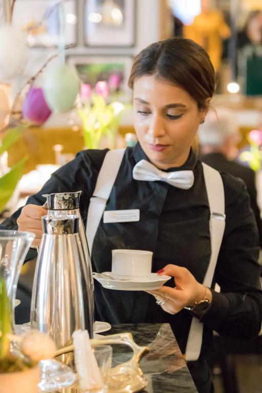 Morgens stärken Sie sich im Drees am abwechslungsreichen Frühstücksbuffet. Im Restaurant werden außerdem internationale und saisonale Gerichte serviert.