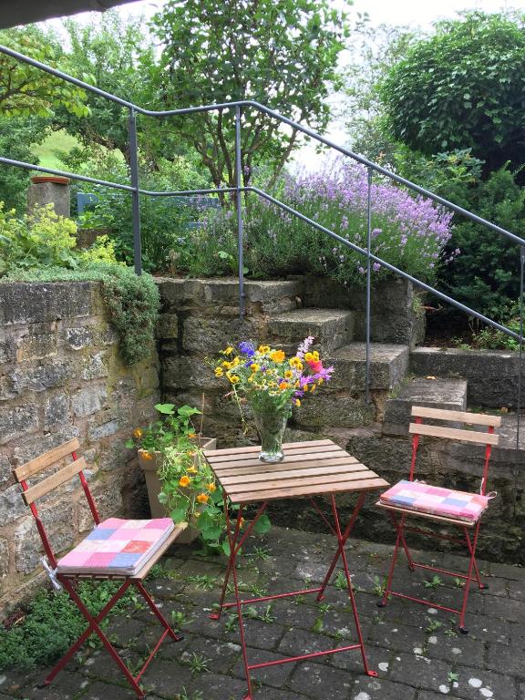 Rose Cottage liegt im romantischen Taubertal - nur 8 km vom weltberühmten Rothenburg ob der Tauber entfernt. Das 200 Jahre alte Fachwerkhaus wurde liebevoll von zwei Architekten mit ausschließlich natürlichen Baustoffen restauriert. So sind zum Beispiel die Bodenbeläge sind aus Massivholz. Zusätzlich zur Wohnung und Terrasse können etwa 50m² Garten genutzt werden - Sonnenbaden, grillen etc. Ein Grill kann ausgeliehen werden.