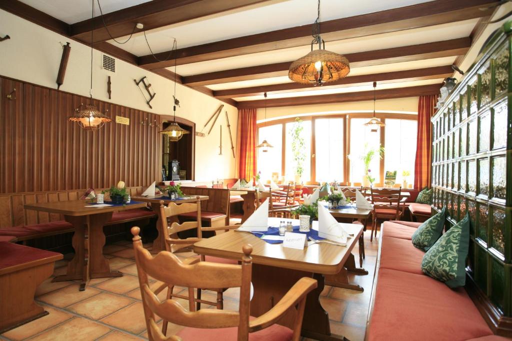 Genießen Sie im Restaurant köstliche deutsche Spezialitäten mit Salaten und Desserts. Bei schönem Wetter lädt die mediterrane Terrasse zum gemütlichen Verweilen ein.