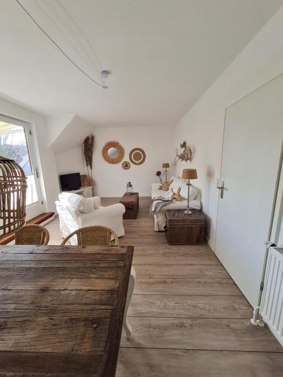 Dieses 55 qm große 3 Zimmer-Apartment liegt im 1. und 2. Obergeschoß eines Reihenhauses und ist nur 150 Meter vom Büsumer Nordseestrand entfernt. Hell und chic über zwei Stockwerke eingerichtet, bietet sie Ihnen einen sonnigen Balkon, eine voll ausgestattete Küche und einen Flachbild-TV, sowie kostenloses WLAN. Das Apartment wurde 2021 vollständig renoviert und neu eingerichtet. Das Reihenhaus liegt in einer ruhigen Seitenstraße. Vor dem Haus steht ihnen ein kostenloser Parkplatz zur Verfügung Das moderne Badezimmer ist mit Dusche, Badewanne und mit einem Haartrockner ausgestattet. Die moderne Küche verfügt über eine Spülmaschine. Auch ein Herd mit Backofen steht zu Ihrer Verfügung. Büsums romantischer Yachthafen ist nur 10 Gehminuten vom Apartment entfernt. Eine Vielzahl von Geschäften finden Sie ebenfalls in der Nähe. Die Innenstadt von Büsum erreichen Sie nach nur 15 Gehminuten.