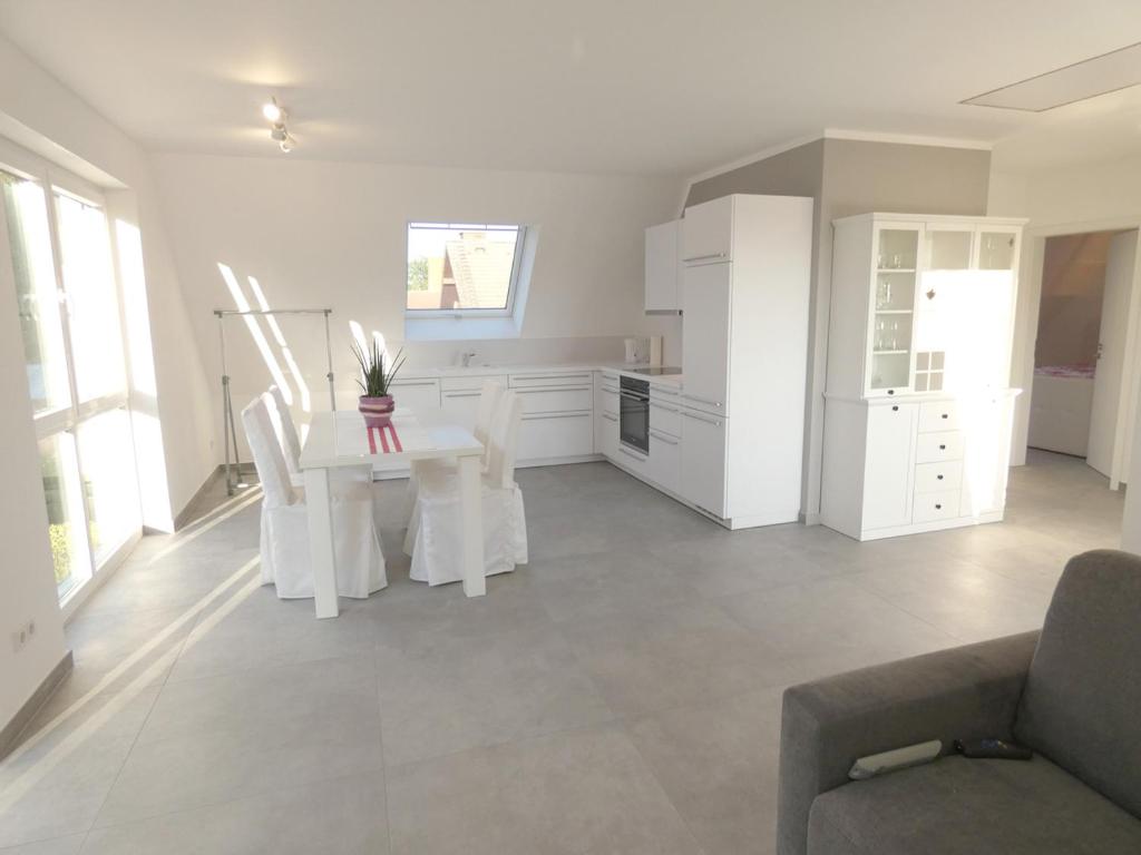 Zur Miete angeboten wird eine schicke 2-Zimmer-Neubau-Ferienwohnung im DG direkt am Pröbstingsee in Borken-Hoxfeld nur ca. 4,5 km von der Innenstadt von Borken entfernt. Die Wohnung wurde in 2019 neu erstellt und hat einen direkten Zugang zum See. Die Lage ist für Angelsportler sehr interessant. Einen Kletterwald gibt es in unmittelbarer Nähe. Die Wohnung kann mit 4 Personen genutzt werden. Das bieten wir: Schicke, weiße Einbauküche mit Miele-Spülmaschine und Grundausstattung wie Töpfe/Pfannen, Geschirr, Besteck usw... Flachbildfernseher im Wohnzimmer u. Schlafzimmer (Sat-Schüssel). Großes Boxspringbett im Schlafzimmer. Große, ausziehbare Couch im Wohnzimmer. Internet Lan u. W-Lan-Zugang. Handtücher u. Bettwäsche vorhanden. Miele-Waschmaschine im Abstellraum. Im Fahrradraum können elektrische Fahrräder aufgeladen werden. Hunde sind erlaubt. Auteilung: DG: Wohn-/Esszimmer mit offener Küche mit Einbauküche, Schlafzimmer, Bad mit Dusche u. Fenster, Abstellraum, Balkon Fahrradraum, kostenloser KFZ-Stellplatz