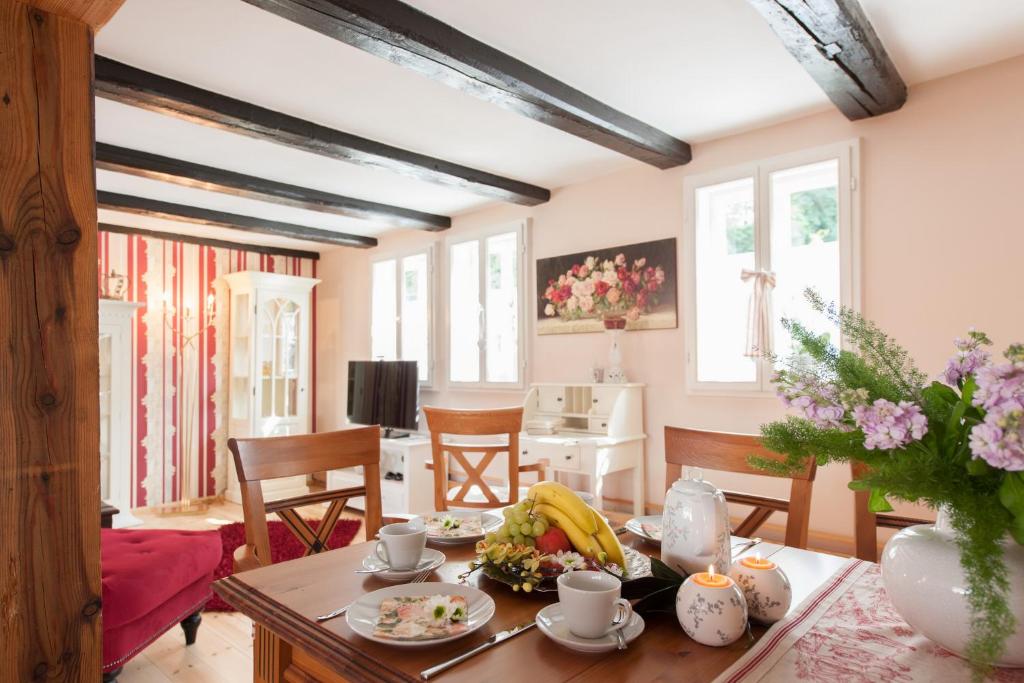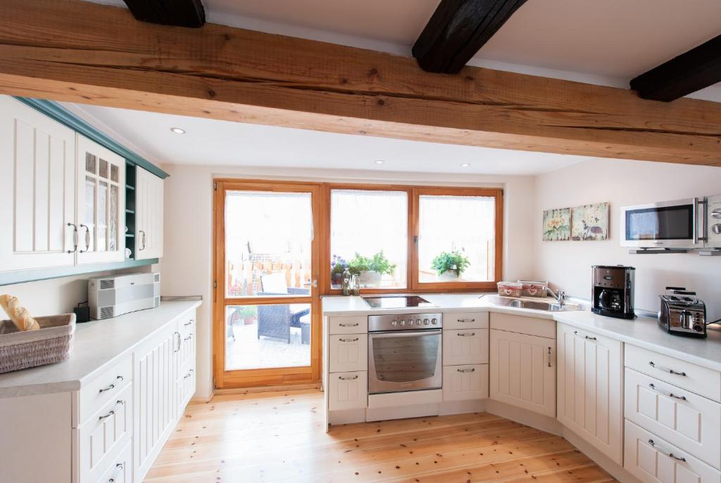 Das Ferienhaus bietet eine Sonnenterrasse. An der Unterkunft steht Ihnen ein Grill zur Verfügung. In unmittelbarer Nähe des Schlossgartens können Sie Ski fahren.