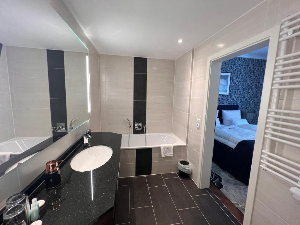 Das Schlosshotel Rheinsberg in Rheinsberg bietet eine Terrasse, ein Restaurant, eine Bar und kostenfreies WLAN in allen Bereichen. Die Unterkunft befindet sich 25 km vom Schloss Mirow, 27 km vom Kulturhaus Stadtgarten und 33 km vom Schloss Tornow entfernt. Die Nichtraucherunterkunft liegt 39 km vom Landestheater Mecklenburg entfernt. Alle Unterkünfte im Hotel sind mit einem Sitzbereich und einem Flachbild-TV ausgestattet. Einige Zimmer im Schlosshotel Rheinsberg bieten ein eigenes Bad mit einer Dusche und kostenfreien Pflegeprodukten sowie Stadtblick. Jedes Zimmer der Unterkunft ist mit Bettwäsche und Handtüchern ausgestattet. Morgens stärken Sie sich im Schlosshotel Rheinsberg am Frühstücksbuffet. Der nächstgelegene Flughafen ist der 129 km vom Hotel entfernte Flughafen Berlin Brandenburg Willy Brandt.