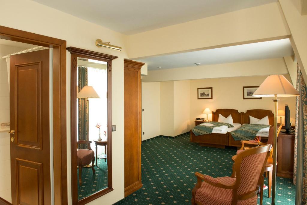 Versteckt hinter prächtigen Schlossmauern empfangen Sie alle komfortablen, individuell eingerichteten Zimmer mit hochwertigen Möbeln und Materialien.