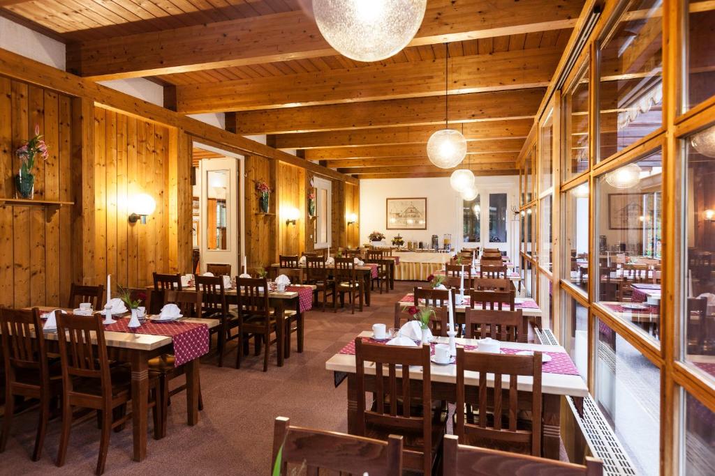 Im Schlossrestaurant im Landhausstil wird ein reichhaltiges Frühstücksbuffet serviert, hier erhalten Sie auch beliebte deutsche Gerichte. Zum Restaurant gehört eine Terrasse mit schöner Aussicht.