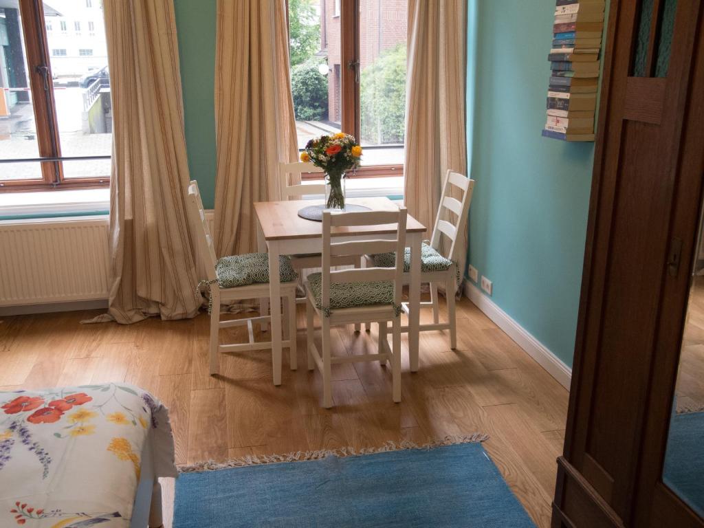 Vorteile: Gute Lage, man ist schnell zu Füß im Zentrum. Das Appartment ist sehr gemütlich. Durch das Hochbett, dass über dem Bad angeordnet ist (möglich, da Altbau mit hohen Räumen), ist die nominell geringe Wohnfläche kein Problem.