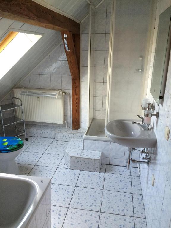 Schöne DG-Ferienwohnung mit zum Wohnraum offener, moderner Küche. Im Schlafzimmer befindet sich ein Doppelbett, 2 weitere Schlafplätze für Kinder bietet ein ausziehbares Sofa im Wohnzimmer. Im Interesse aller Urlauber wünschen wir uns rauch- und tierfreie Räume. Die Wohnung befindet sich in einem 3-Fam. Haus und liegt an einer ruhigen Anliegerstrasse / Sackgasse. Die Anfahrt erfolgt u.a. über die A11 Abfahrt Finowfurt, von dort sind es 10 Min. Fahrtweg.