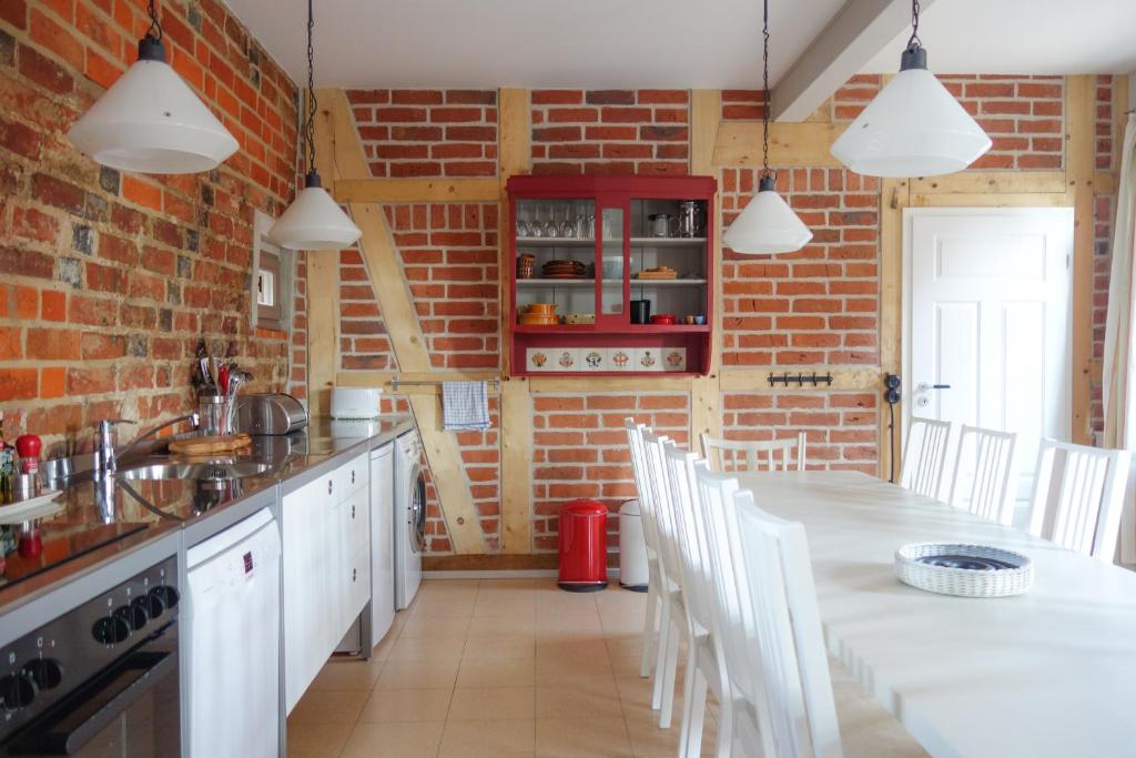 Manche Unterkünfte umfassen eine Küche mit einem Kühlschrank, einem Backofen und einem Geschirrspüler.