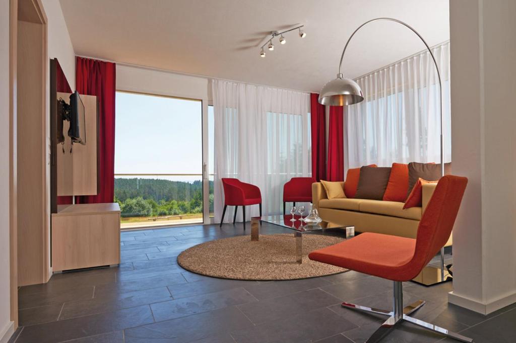 Alle Zimmer in der 4-Sterne-Unterkunft Schwarzwald Lodge Rothaus verfügen über eine Minibar und Sat-TV. Im eigenen Bad finden Sie einen Haartrockner, Bademäntel und Hausschuhe.