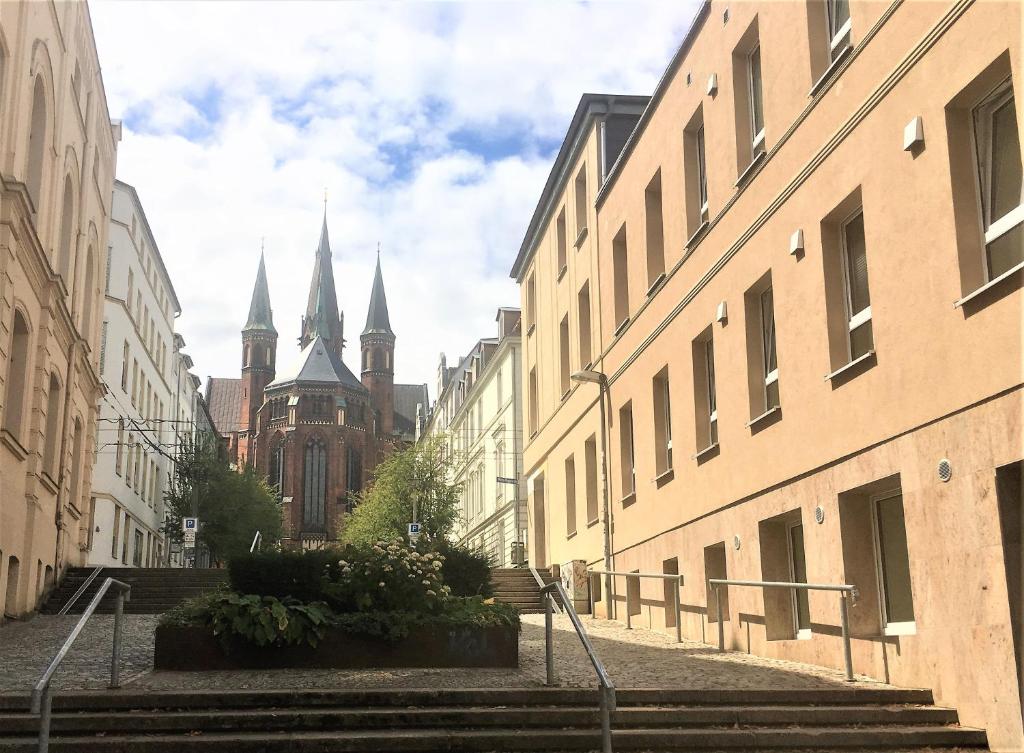 Dieses großzügige Appartement befindet sich in unmittelbarer Nähe zu Pfaffenteich (50m), im 1. Obergeschoss eines 3-Stöckigen Hauses. Zugang zum Apartment ist von der Wismarschen Straße. Die Fenster der Zimmergehen zum Fußweg, das Bad und Küche zum Innenhof. Unser Appartement ist mit 46 qm großzügig geschnitten und neu renoviert. In der voll ausgestatteten Einbauküche erwarten Sie eine Ofen-Mikrowelle, eine Induktionskochplatte, ein Geschirrspüler, Kaffeemaschine und Wasserkocher. Das Badezimmer verfügt über eine Badewanne, Glas-Duschabtrennung, WC und Waschbecken. Im Schlafzimmer dürft ihr euch auf einem gemütlichen 1,40m x 2,10m Bett von Ihrem Abenteuer in unserer schönen Landeshauptstadt erholen. Bei Bedarf können wir auch ein Baby-Bett mit Matratze und Bettwäsche zur Verfügung stellen. Nebenan befindet sich das Wohnzimmer, einem großen Fernseher, einem stylischen Couchtisch und einer großen Couch, die sich super als Schlafplatz für eine dritte Person eignet. Die Küche verfügt über einen Esstisch mit Stühlen. Während Ihres Aufenthaltes können Sie unser k o s t e n l o s e s WLAN nutzen.