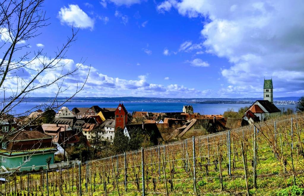 Die Silvaner-Laube Ferienwohnung Silvanerlaube A erwartet Sie mit einem Balkon und Seeblick in Meersburg in Baden-Württemberg. Die Unterkunft befindet