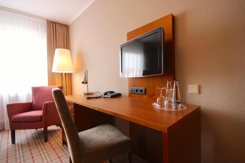 Die Zimmer im Seehotel sind in Orange- und Blautönen gehalten und mit einem Flachbild-TV sowie einem Kühlschrank ausgestattet. Im eigenen Badezimmer liegt ein Haartrockner für Sie bereit.