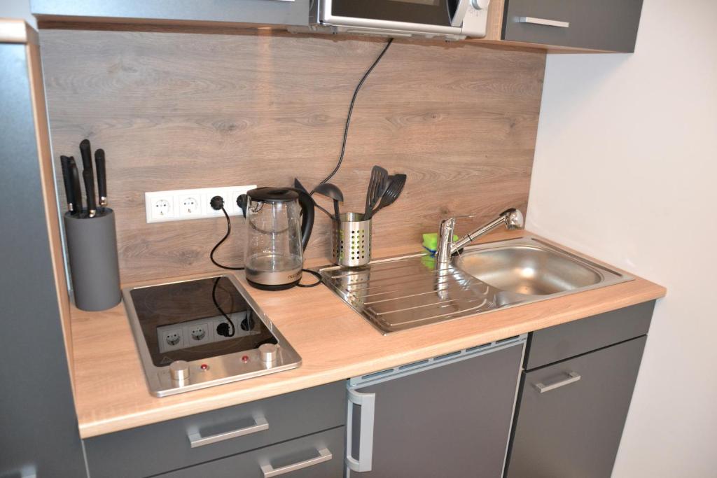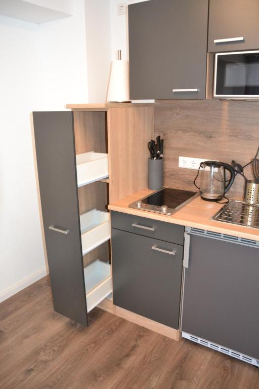 Dieses Apartment verfügt über 1 Schlafzimmer, eine Küchenzeile mit einer Mikrowelle und einem Kühlschrank, einen Flachbild-TV, einen Sitzbereich und 1 Bad mit einer Dusche. Handtücher und Bettwäsche werden gestellt.