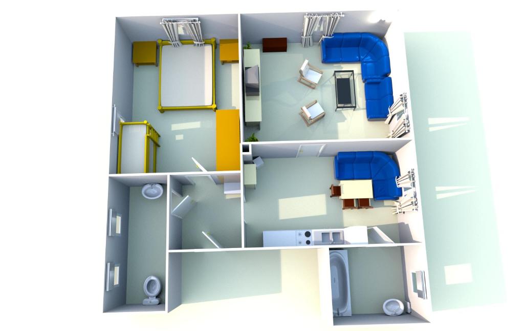 Die Apartments sind hell eingerichtet und verfügen über ein separates Schlafzimmer, ein Wohnzimmer mit einem Flachbild-TV sowie ein eigenes Bad mit einer Badewanne und einem Haartrockner.