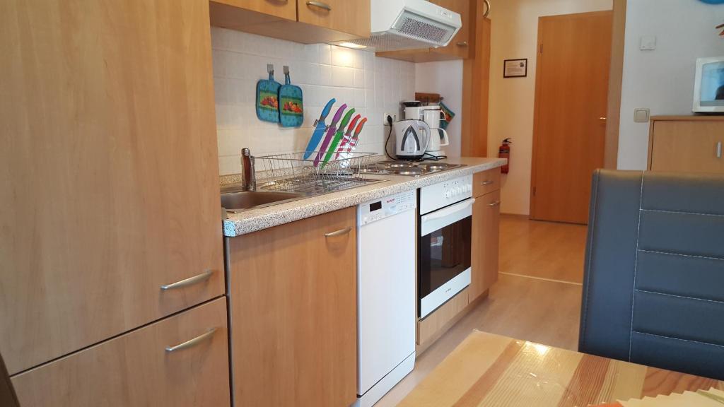 In der voll ausgestatteten Küche der Unterkunft mit einer Kaffeemaschine und einer Mikrowelle können Sie sich Mahlzeiten und Snacks zubereiten. Grillmöglichkeiten sind ebenfalls vorhanden.