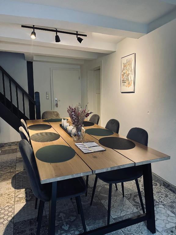 Unsere Unterkunft ist ein altes Fachwerkhaus aus dem 1700 Jahrhundert. Wir besitzen 5 Schlafzimmer und ein gemeinsamen Aufenthaltsraum mit großem Esstisch. Die Unterkunft befindet sich mitten in der Altstadt und ist ein Fachwerkhaus das ihr allein für euch nutzen könnt. In wenigen Metern befindet ihr euch auf dem Markplatz, an der Kaiserplatz oder mitten im Wald. Der anliegende Abstellraum hat Steckdosen für das Laden von E-Bikes und ist geeignet um Ski Sachen zu trocknen.