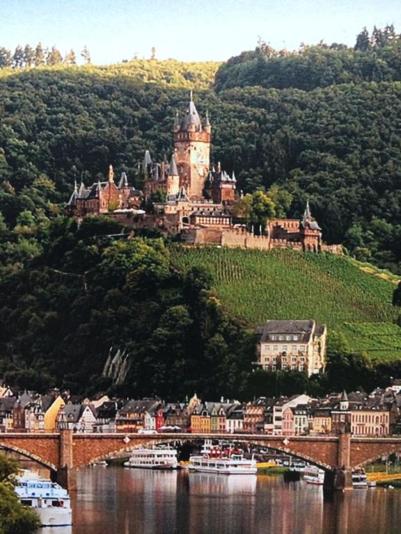 Von unserem Domizil aus, welches sich in einer Spitzenlage mit Panoramablick auf Altstadt, Mosel Weinberge und die Reichsburg befindet, sind es nur wenige Minuten Fußweg zur Altstadt und Moselufer. Sie wohnen zentral und dennoch ruhig. Genießen Sie Ihre schönsten Urlaubstage mit allen Annehmlichkeiten in unserem liebevoll eingerichteten Domizil. Erholen Sie sich auf Ihrem Balkon. Cochem ist meine Heimatstadt mit unbeschreiblichem Blick auf die Mosellandschaft, die Burg Cochem und das Pinner-Kreuz. Die Ferienwohnung (55 qm) liegt auf der Sonnenseite und bietet mit ihrer guten Verkehrsanbindung den optimalen Mix zwischen nächtlicher Ruhe und die Nähe zur Altstadt mit ihren Sehenswürdigkeiten.